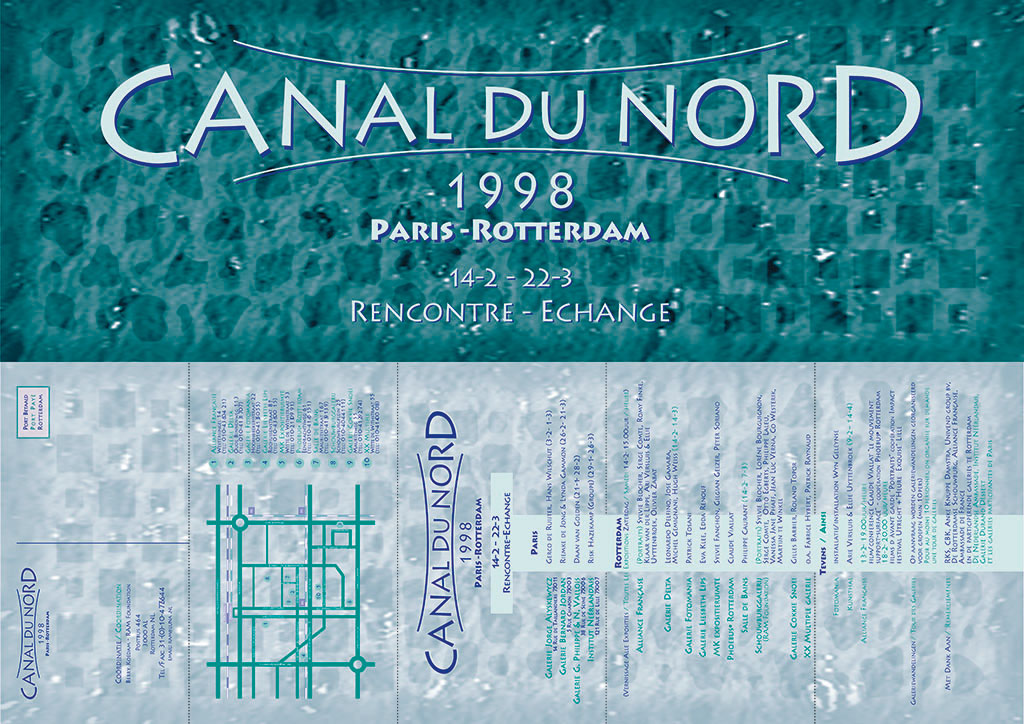 Uitnodigingskaart voor de opening van de culturele uitwisselingstentoonstelling Canal du Nord, in 1998. Geopend door de toenmalige culturele adviseur van de Franse ambassade, dhr. Robert Tabarant in de Rotterdamse Schouwburg. Nederlandse en Franse kunstenaars werden op diverse plekken in Rotterdam en Parijs getoond.
