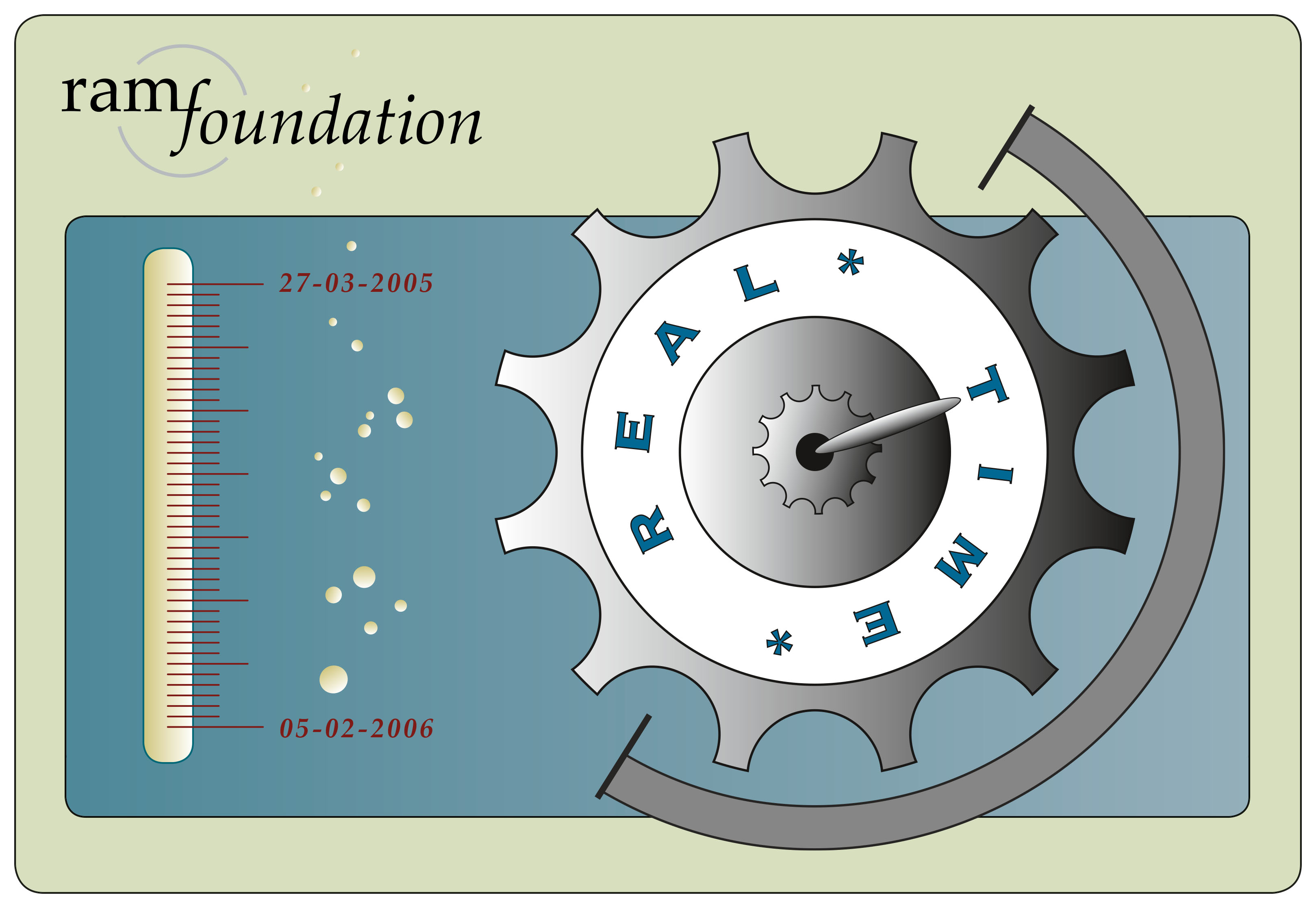 Vanaf 1990 ben ik betrokken geweest bij RAM en ramfoundation. Vanaf 1995 t/m 2015 heb ik alle grafische vormgeving verzorgd.>Huisstijlen, uitnodigingen, nieuwsbrieven, brochures etc. ramfoundation maakt tentoonstellingen op het grensgebied van design en beeldende kunst. Regelmatig wordt op een bepaald thema een tentoonstelling georganiserd, zoals recycling, communicatie etc.Real Time was een projecttentoonstelling over nieuwe media, waarvoor ik de catalogus ontworpen heb.